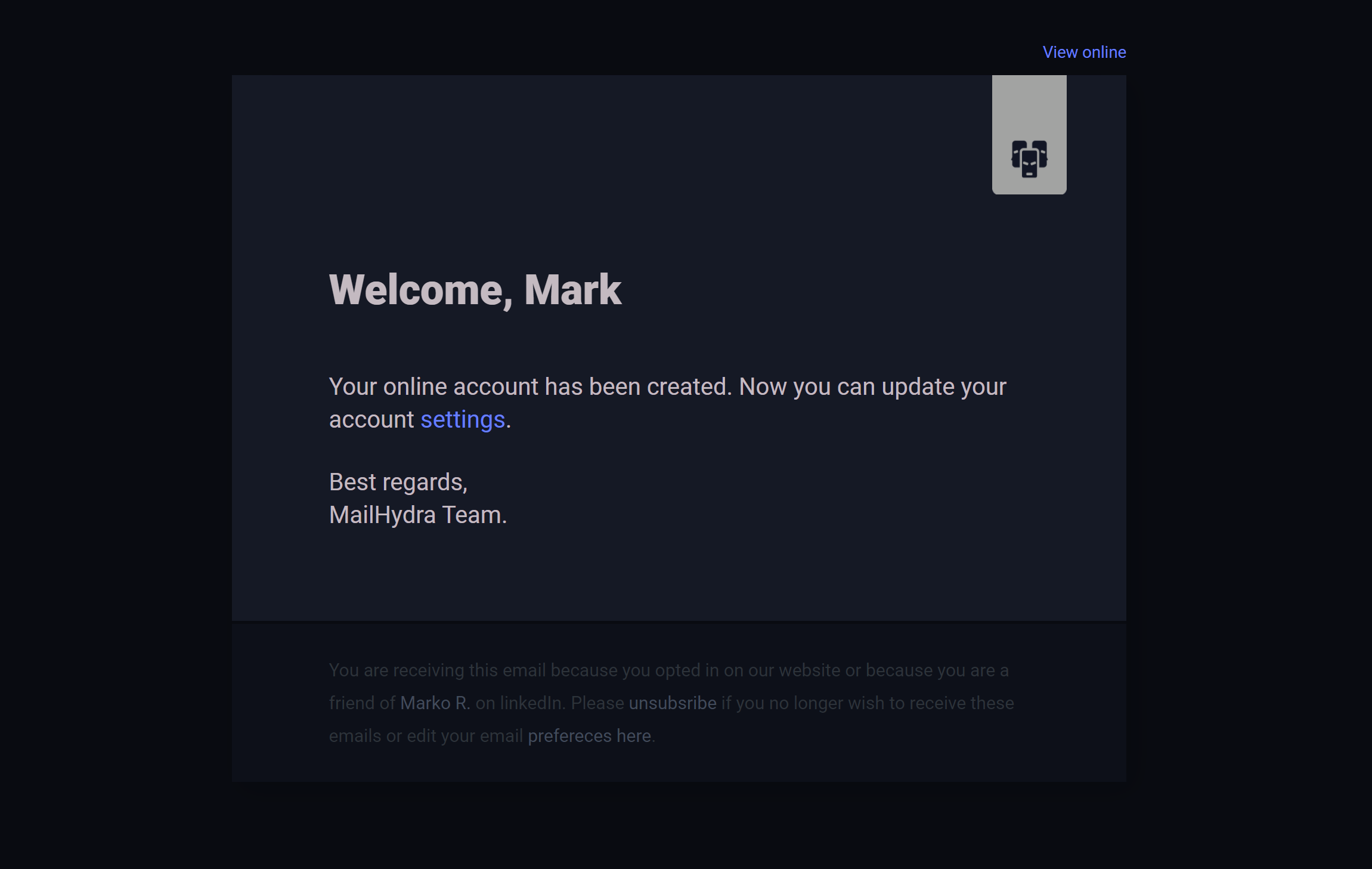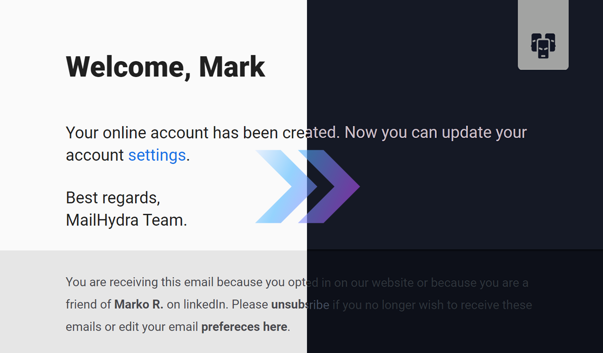 While crating email and the supporting graphics, we parallelly design for white and dark mode in mind. Our design won't fall apart if the user has dark mode turned on.